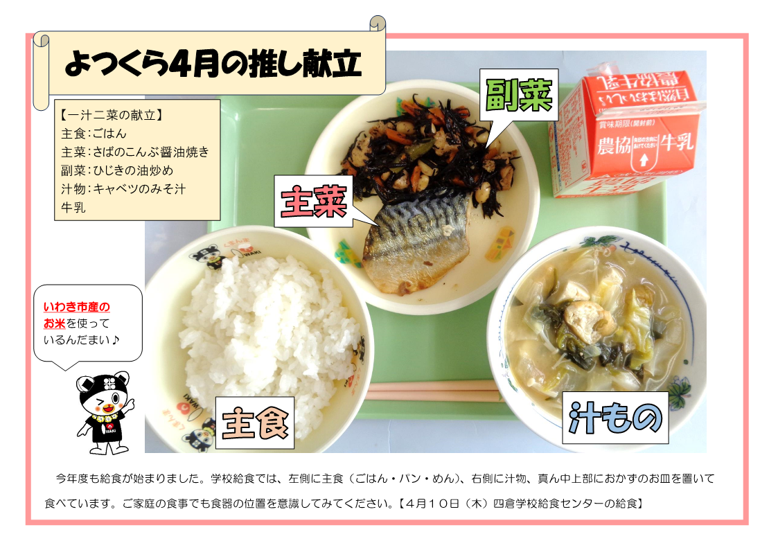 四倉学校給食共同調理場では「スキマ時間で食育情報!」をコンセプトに、短い時間で・簡単に・家庭で・見れる食育情報を紹介していく予定です。