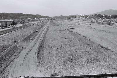 真っ直ぐに延びた常磐線の上下合わせて4本の鉄路。その東側に広がる高層の建物や瀟洒(しょうしゃ)な住宅の連なり。今ではありふれた都市部の光景の一つかもしれませんが、いわき市の歩みとほぼ同じ歳月のなかで、激動の社会変化を映した土地利用の変化と街づくりへのさまざまな思いをみることができます。