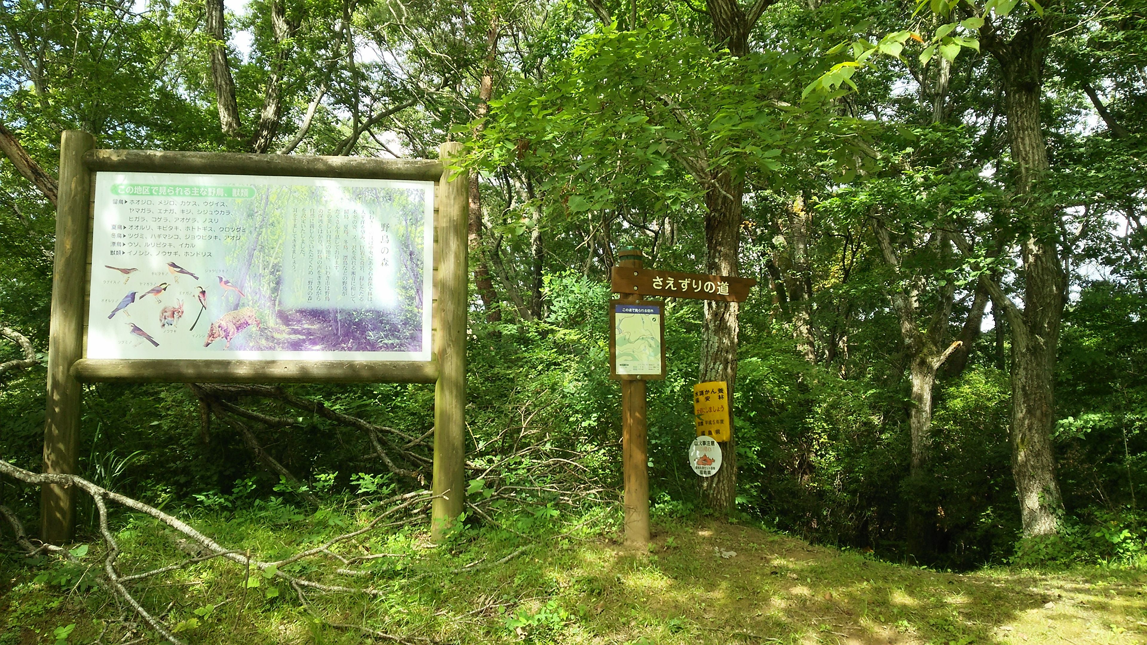 入口にある「野鳥の森」には、石森山で見られる主な野鳥や獣類が書かれています。ぜひ参考にしてください。(H28.8.2撮影)