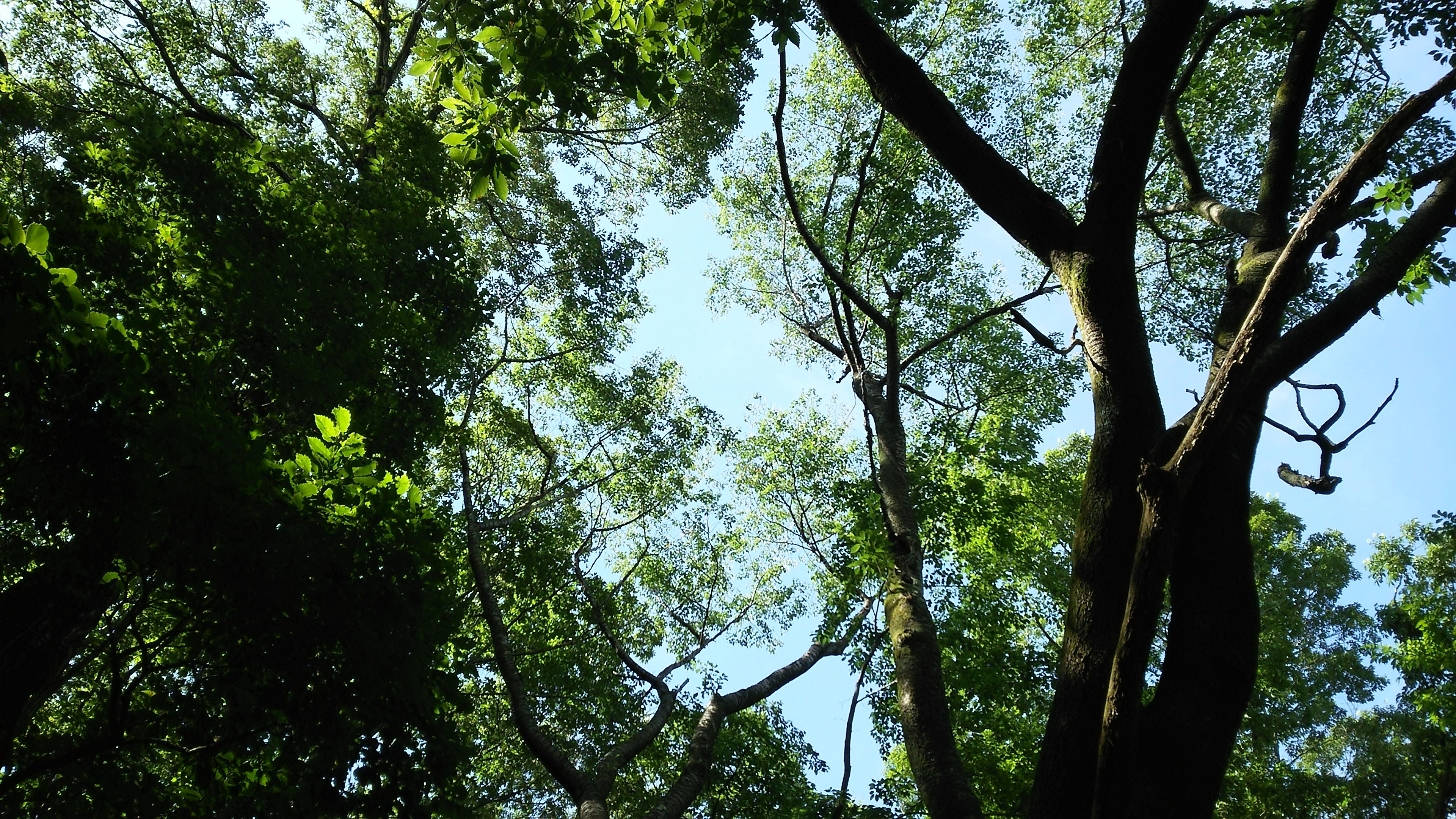 空を見上げれば、野鳥の声が絶え間なく聞こえます。(H28.8.2撮影)