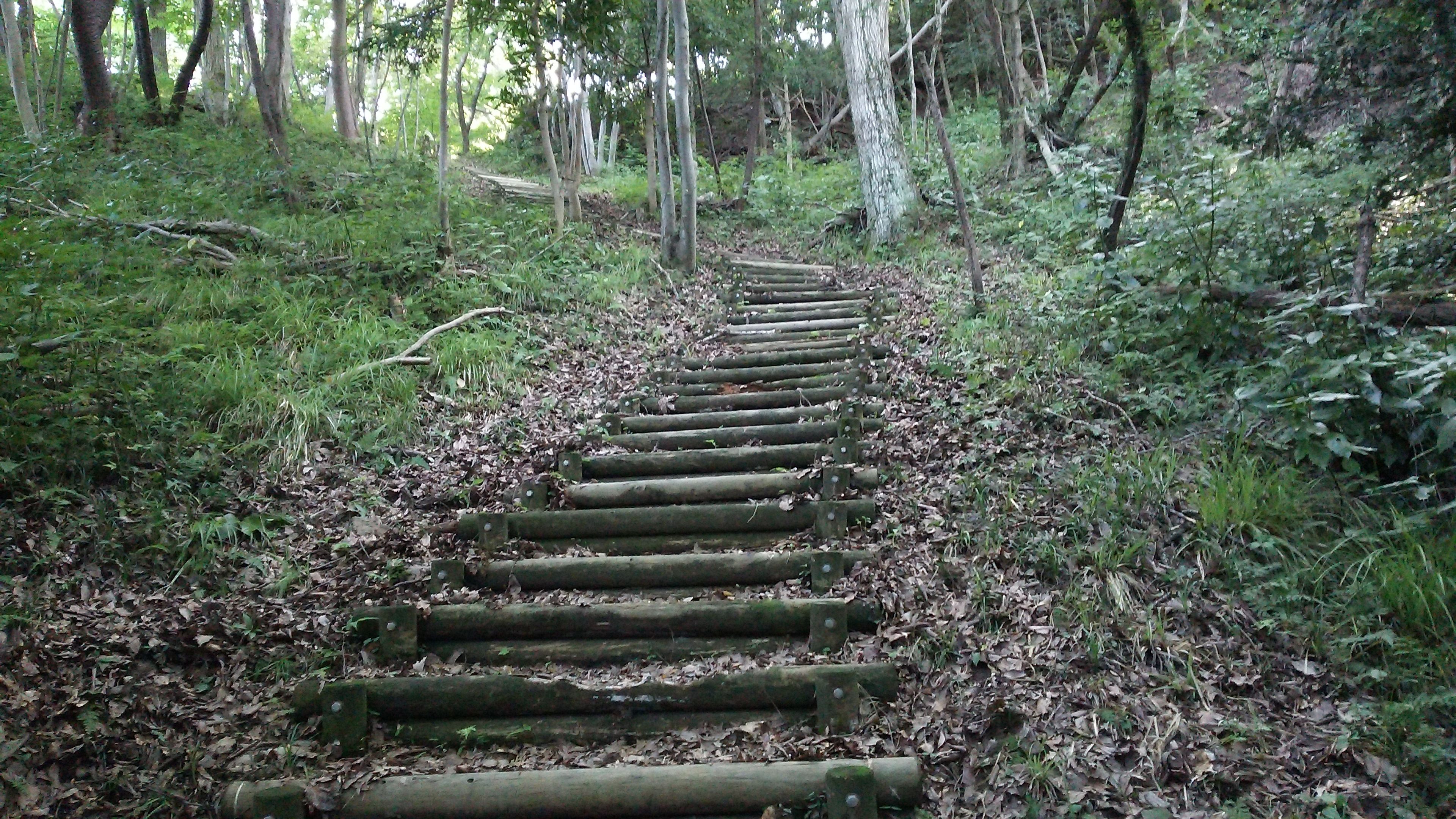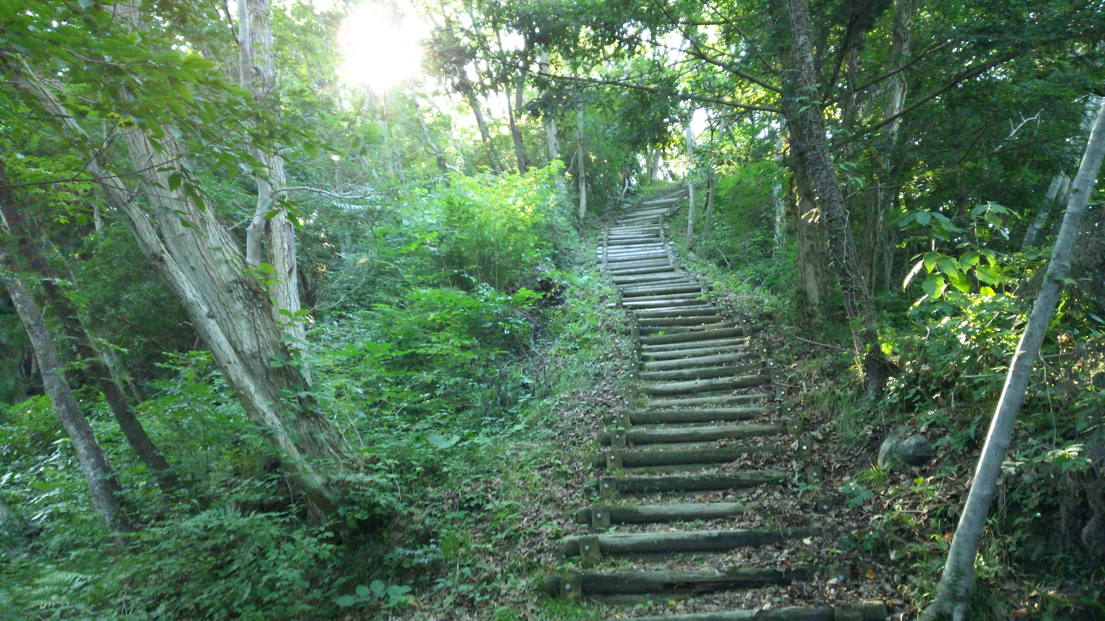 長い階段になります。下から林道入森線の入口に向かって撮影。(H28.7.29撮影)