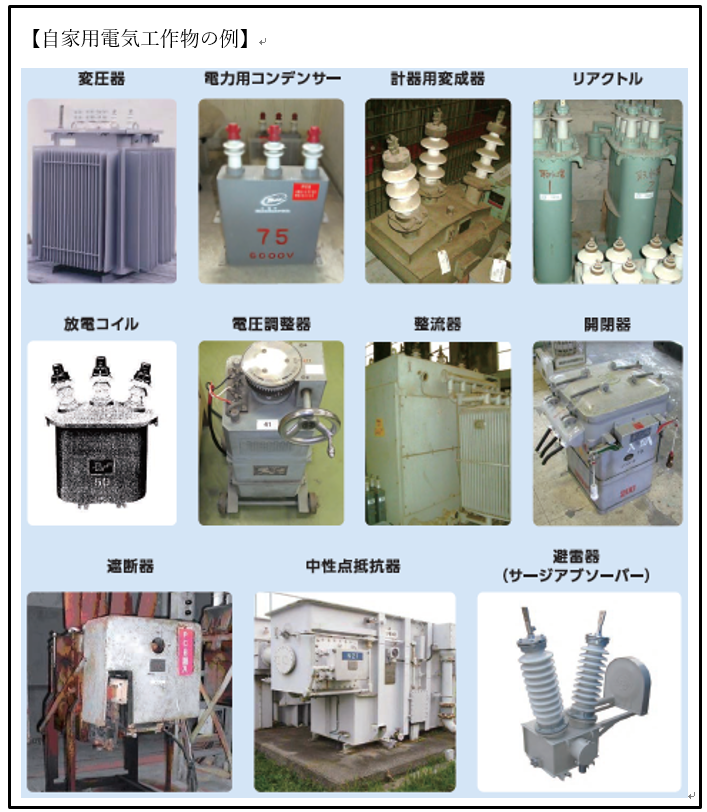 以下にOFケーブルを除く自家用電気工作物の外観の例を示しています。