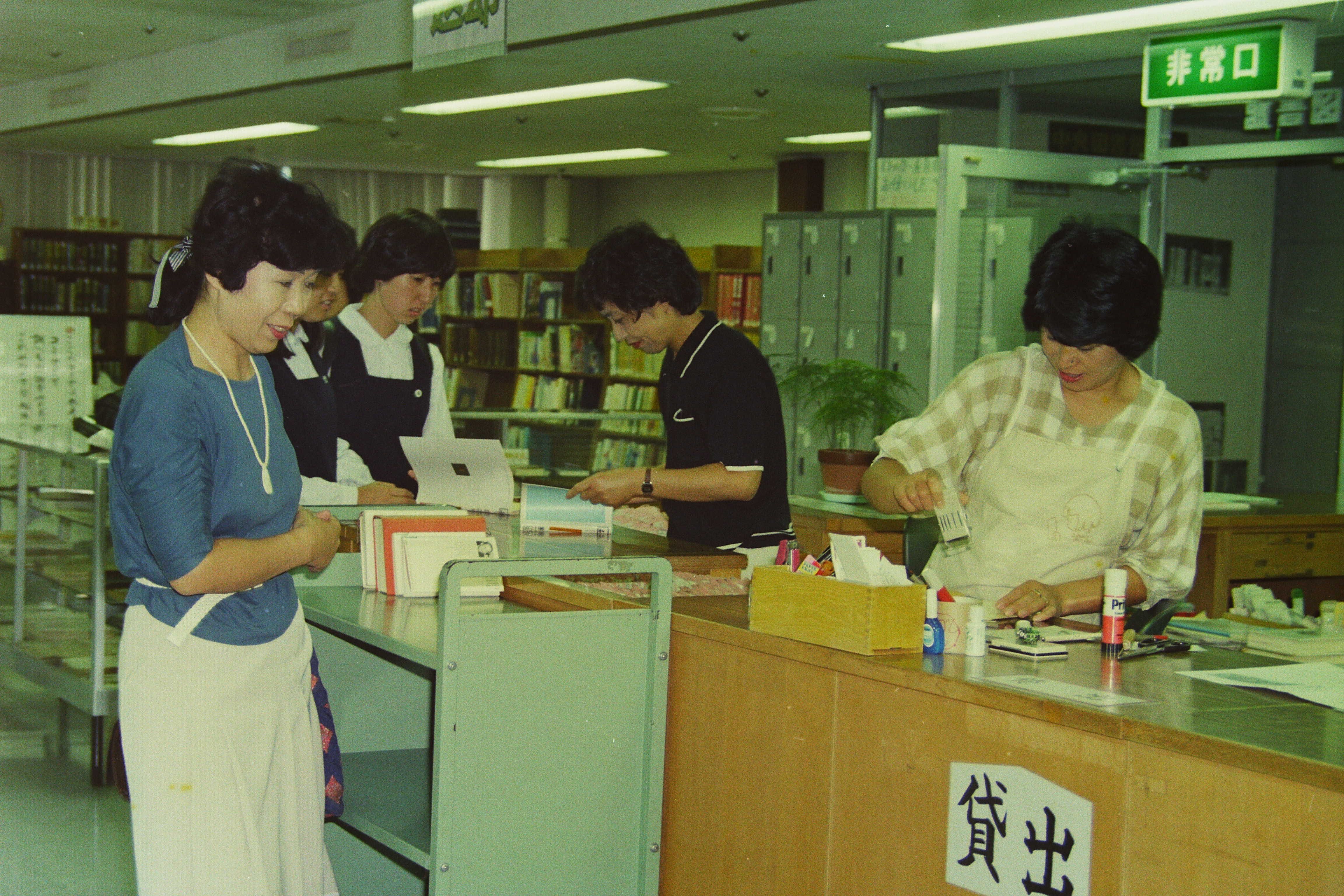 市立中央図書館 貸出・返却カウンター(昭和61年9月)
