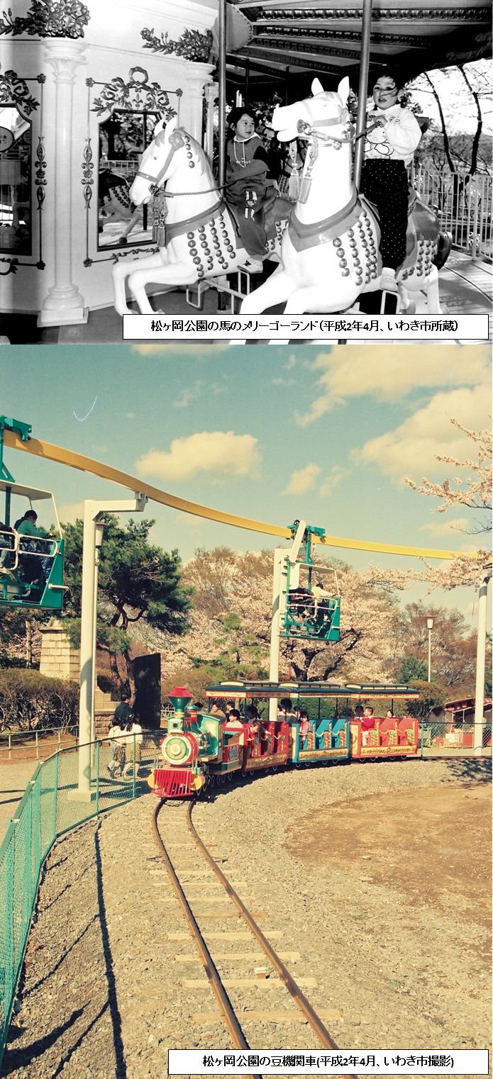 上:松ヶ岡公園の馬のメリーゴーランド〔平成2(1990)年4月、いわき市所蔵〕