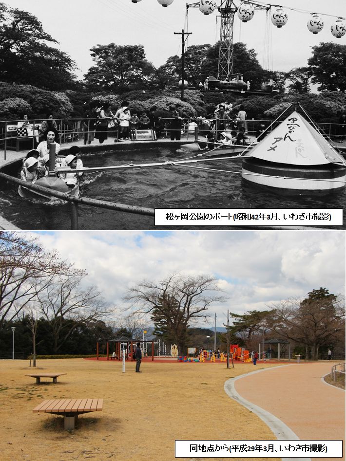 上:松ヶ岡公園のボート(平成8年頃 いわき市撮影)
