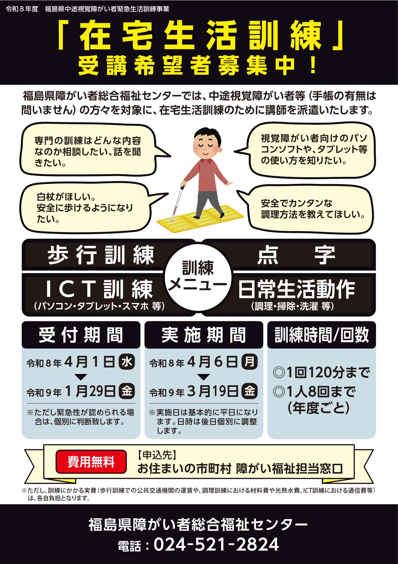 中途視覚障がい者等を対象とした「在宅生活訓練」の受講希望者を募集します