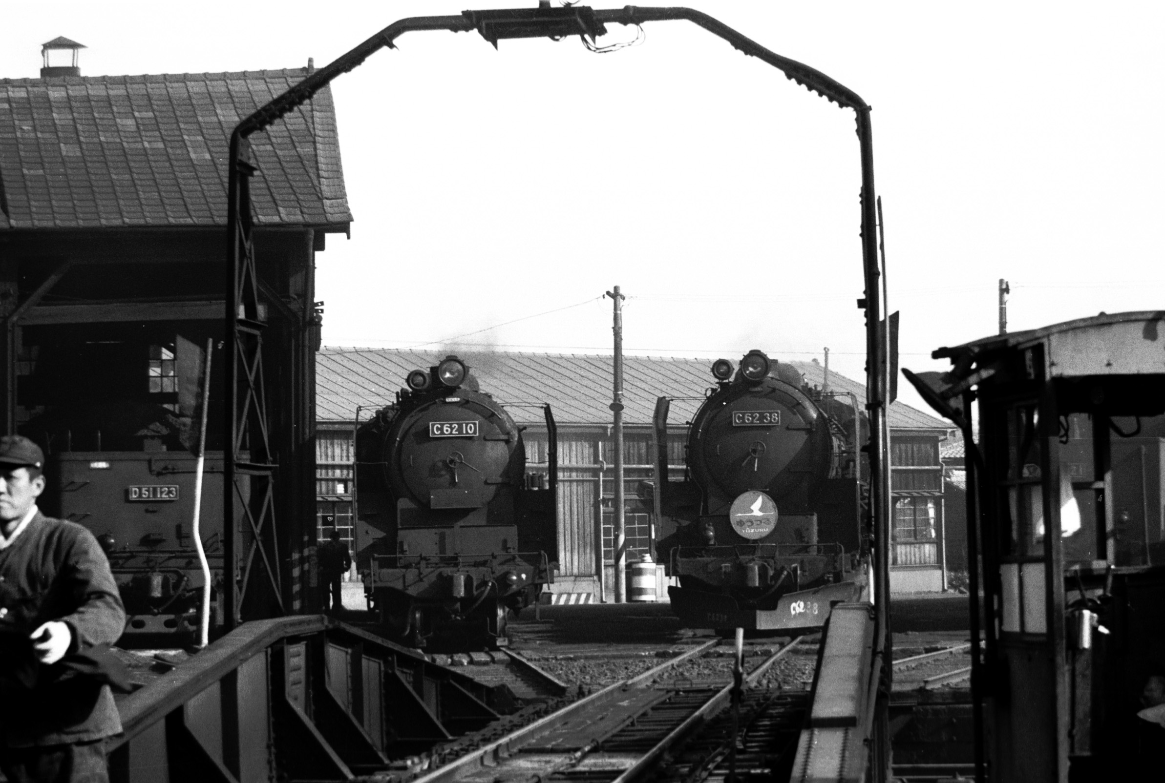 平機関庫転車台付近のc62+c6238ゆうづる(昭41年1月5日、米本健一氏撮影)