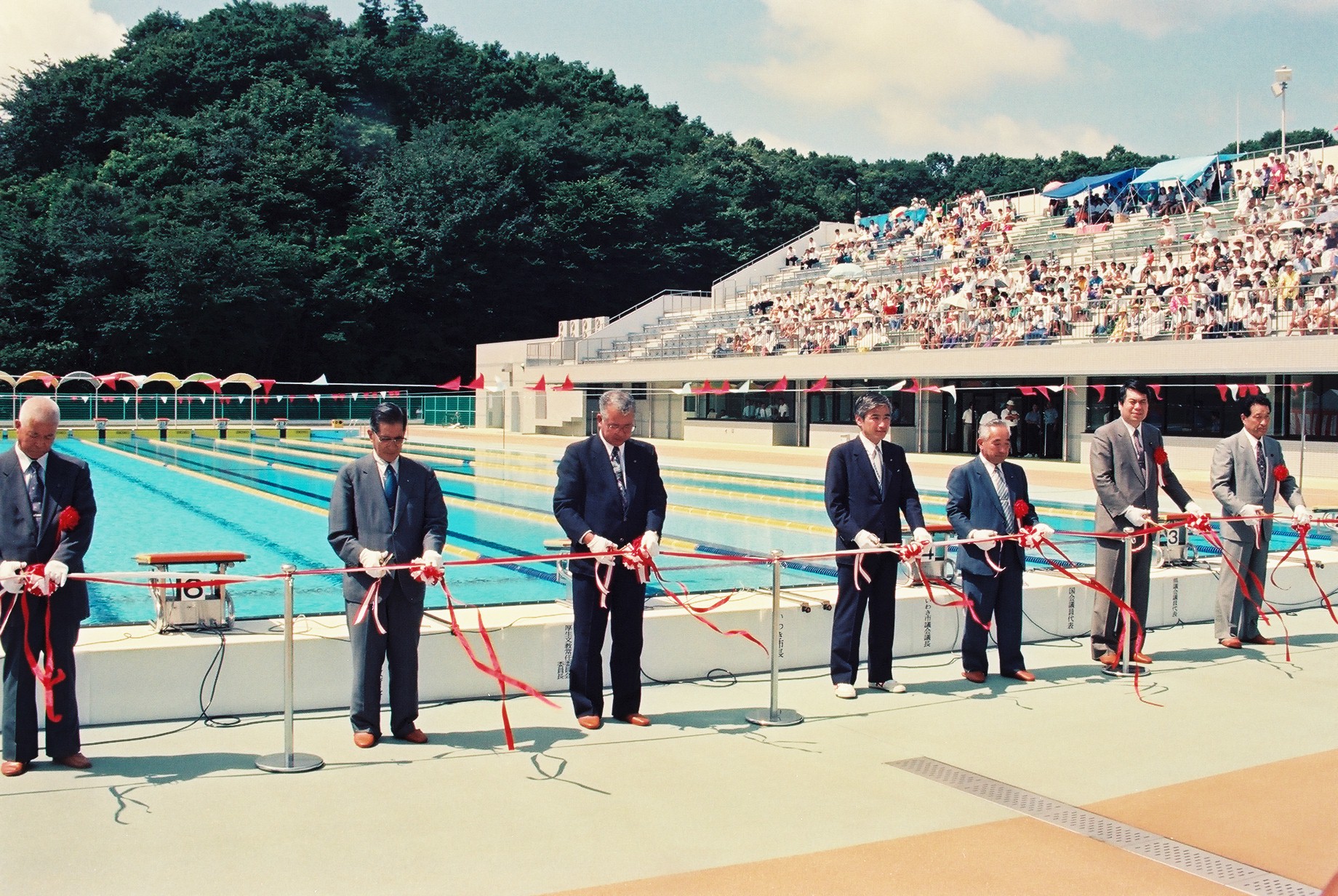 いわき市民プール・落成式テープカット(平成6年7月25日、いわき市撮影)
