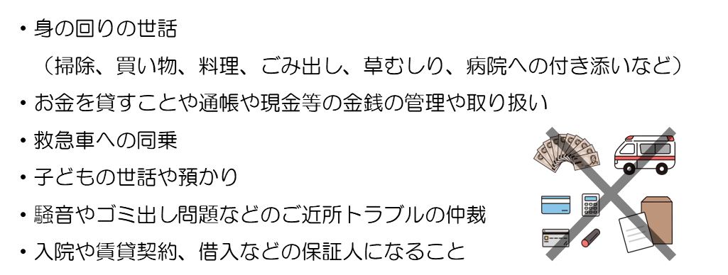 民生委員は「つなぎ役」なので、個人で次のようなことはできません