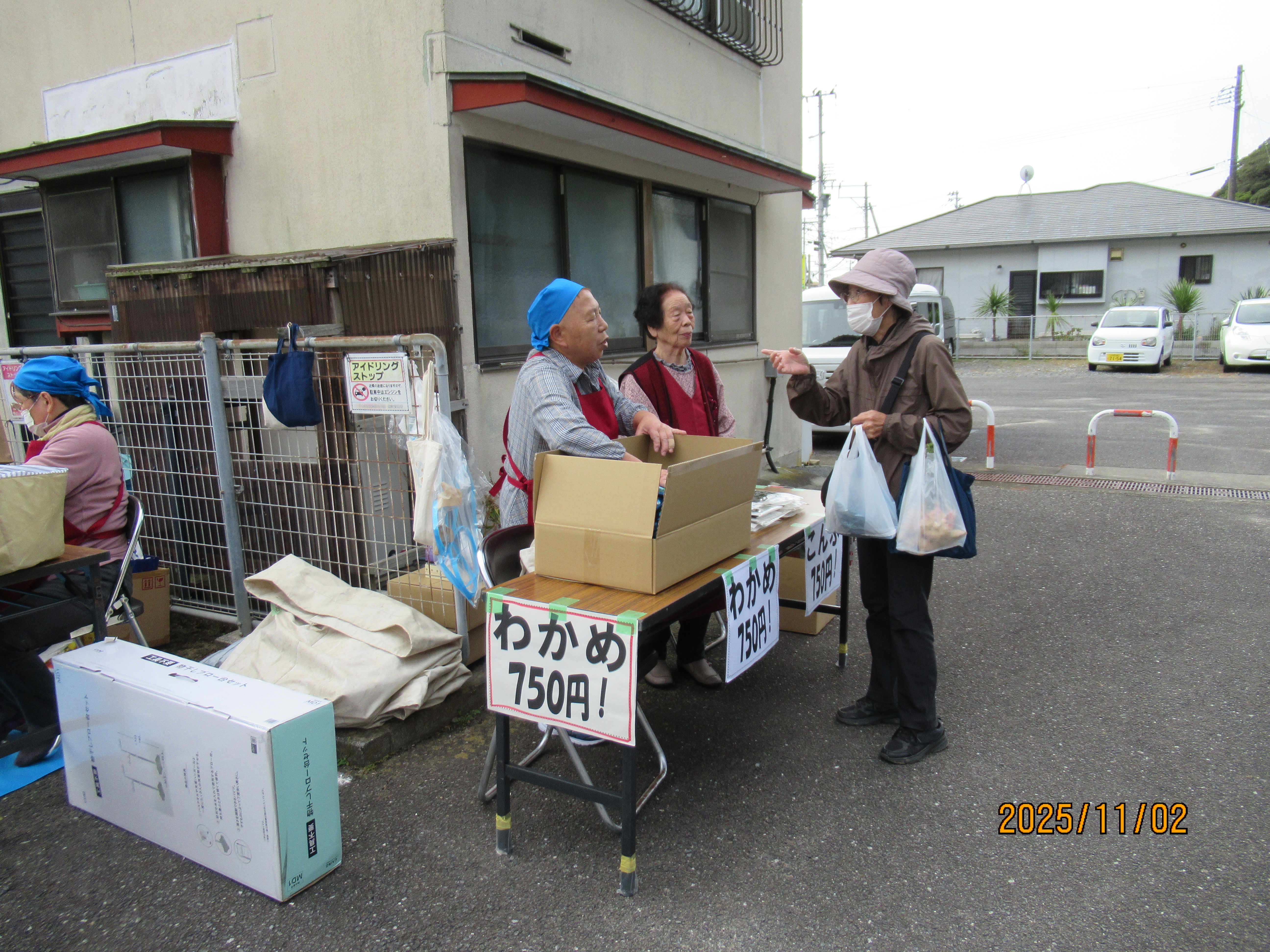 バザー・食堂・わかめ販売(豊間婦人会)、野菜直売(遠野・高木さん)、パン・シュークリーム販売(虹のかけはし)、和菓子・おふかし(玉泉堂)、タコ飯(カネセン水産)、健康相談コーナー(平地域包括支援センター)も開設され、多くの方にご利用いただきました。