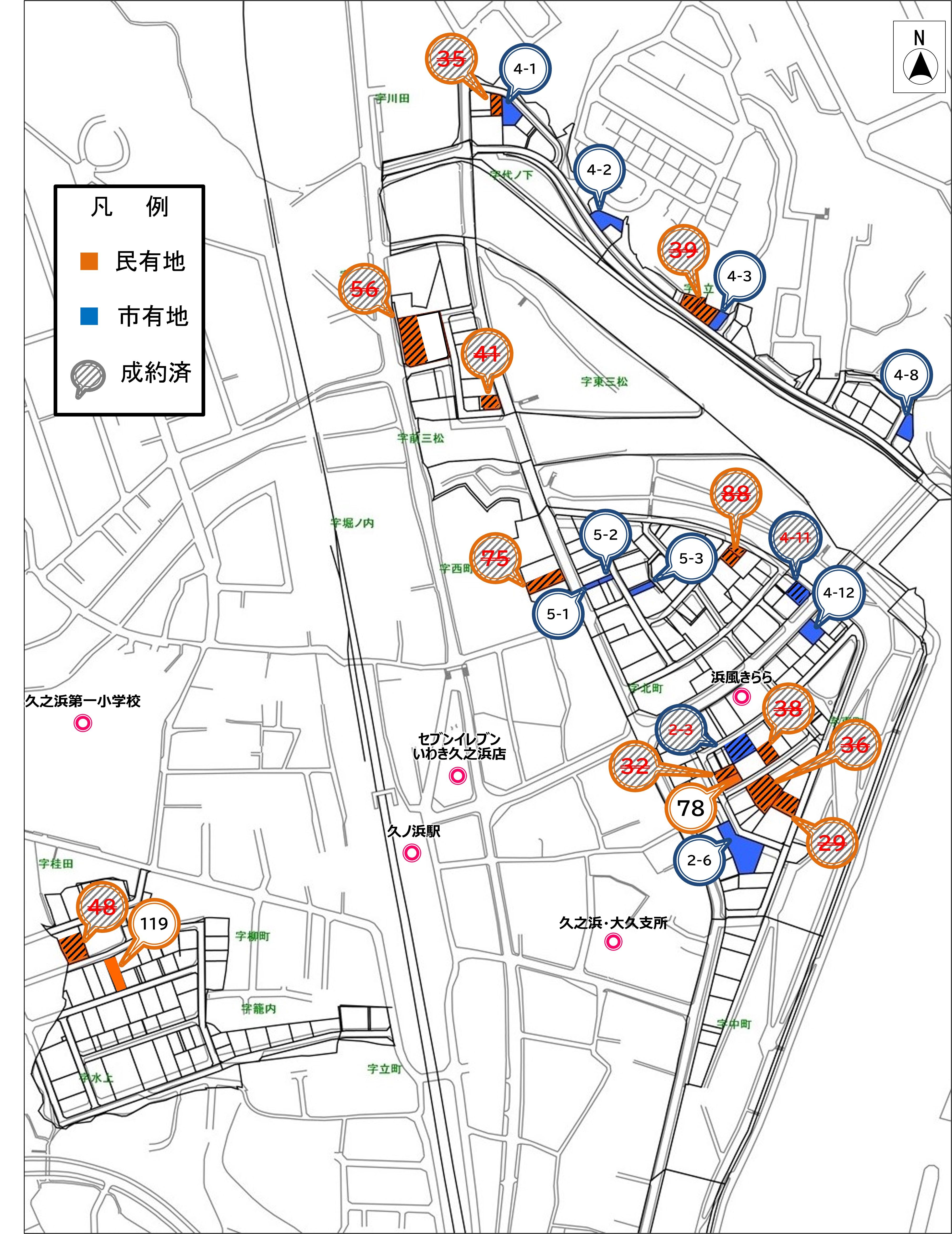 水上地区は、難視聴区域のため共同受信施設の利用(加入金、引込工事費及び維持管理費負担)が必要となる場合があります。また、久之浜地区は、いわき市立地適正化計画における「まちなか居住区域」及び「都市機能誘導区域」の対象エリア外です。