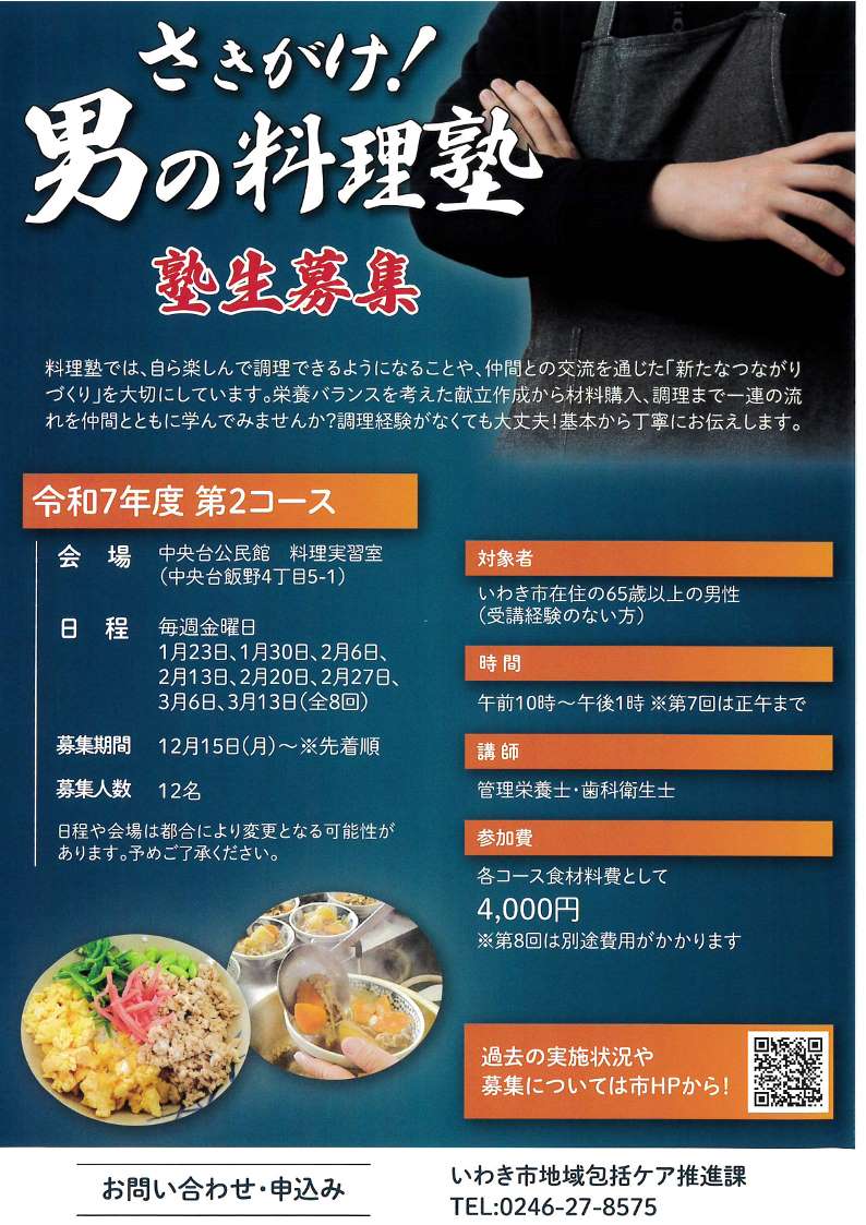 令和7年度「さきがけ!男の料理塾」第2コース塾生の募集について