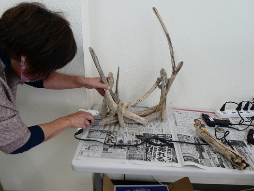 たくさんの流木の中から、じっくり流木を選んで、イメージをふくらませ製作開始です。