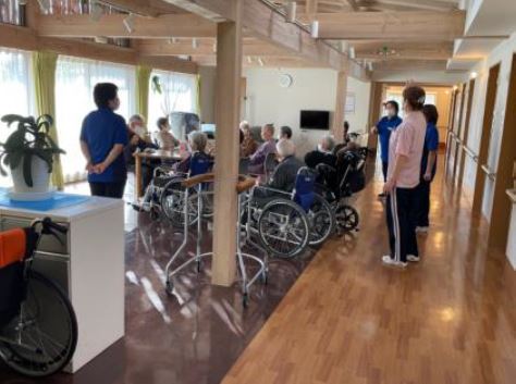 例年、当事業所の訓練実施日に併せて、隣接する福祉施設(しんせつ館ゆもと)と連携し、消防訓練を実施している。また、いわき市立湯本第二小学校の児童を招き、訓練の実施状況を見学、濃煙を体験してもらうことで、防火思想の普及を図っている。