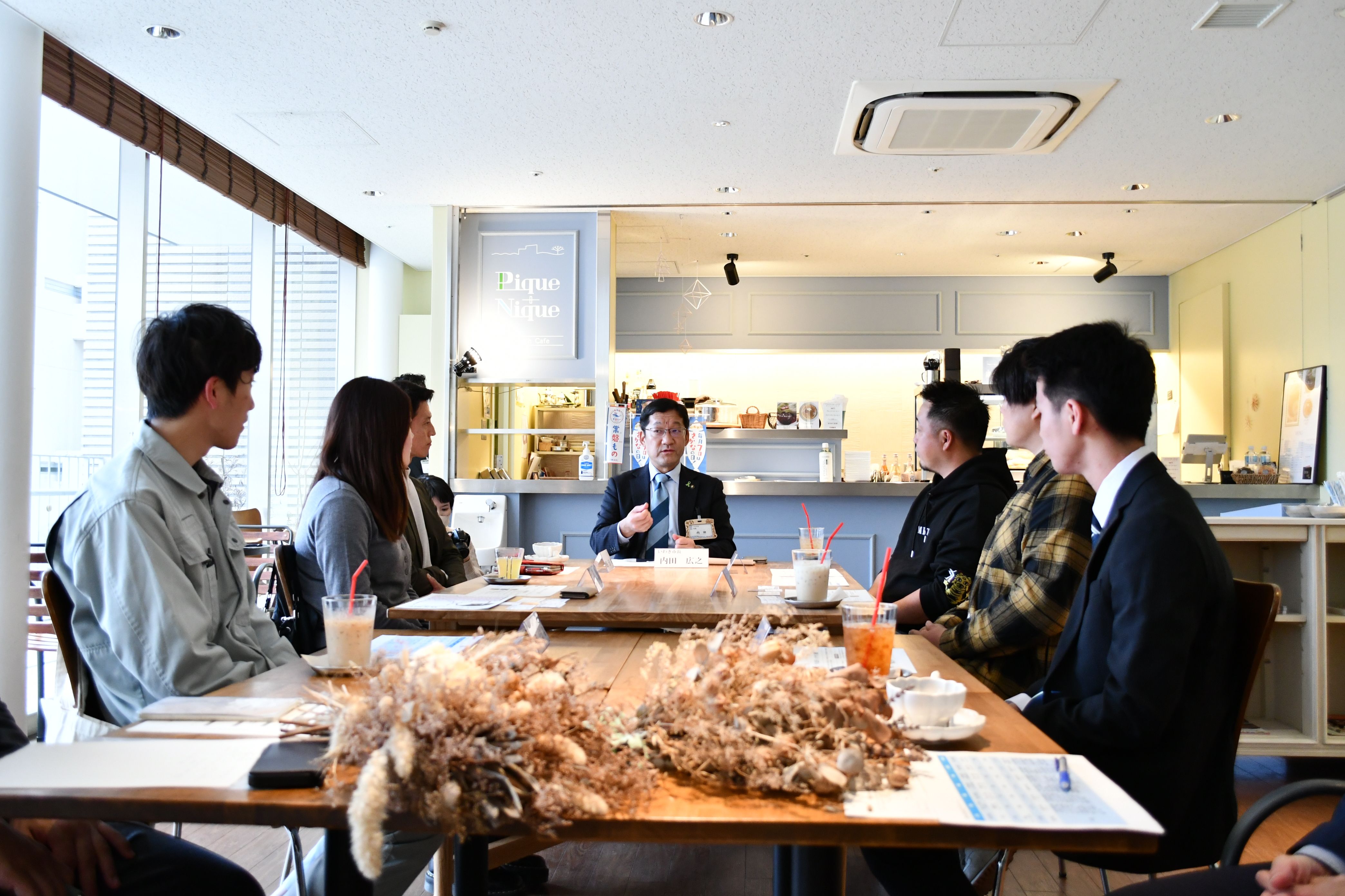 第1回目は、「Pique+Nique(ピッケニッケ)」において、好間工業団地連合会会員企業の若手社員5名(いわき市出身)の皆さんと懇談を行いました。