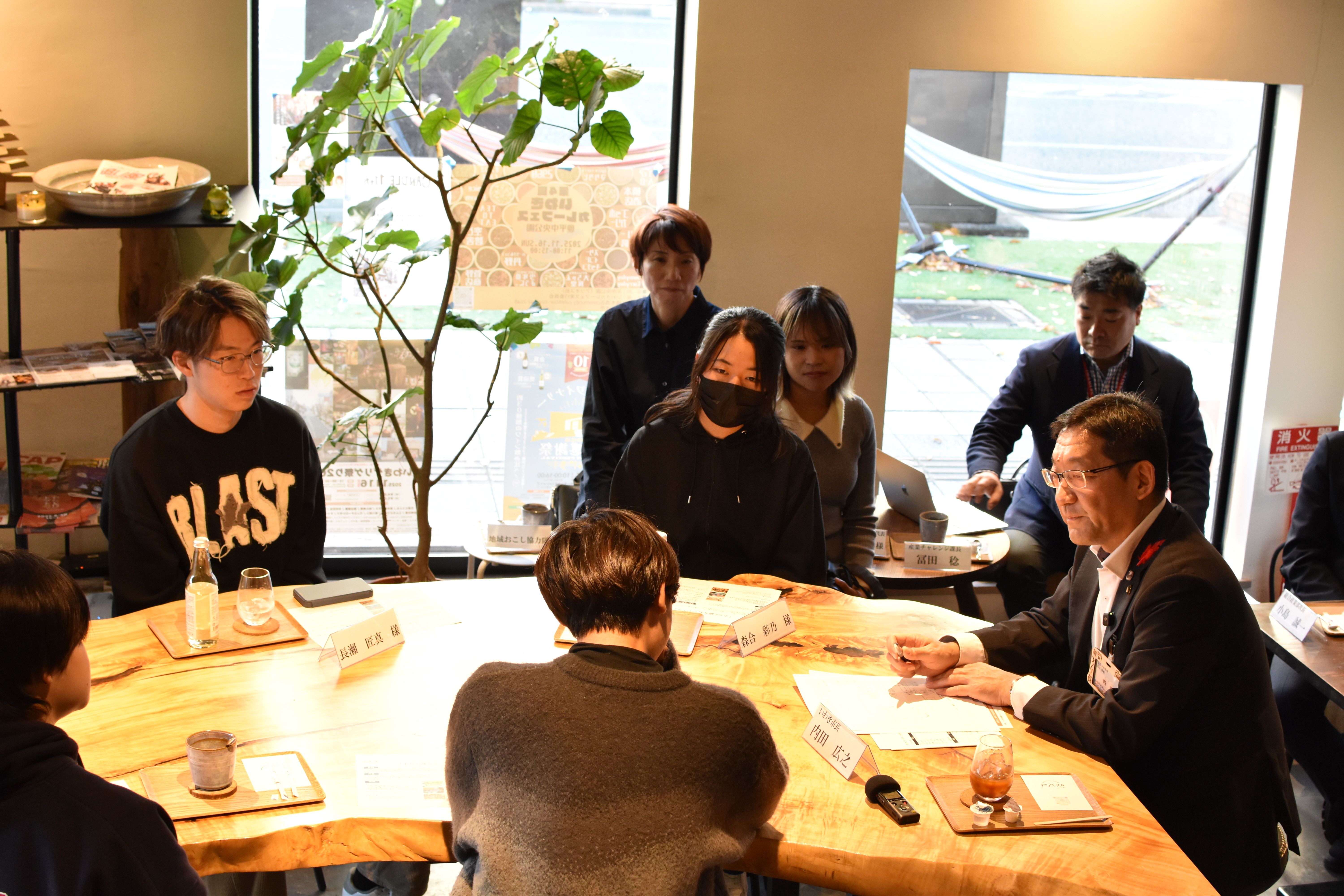 - 懇談では、学生が考える「いわきとの関わり」「これからのいわきへの期待」等について意見交換を行いました。