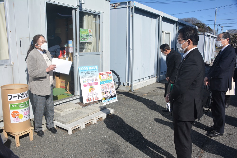 いわき・ら・ら・ミュウ内にある「いわき市観光物産センター」では、フードバンク事業などを行う「特定非営利活動法人ザ・ピープル」や鹿島公民館で多世代が交流できる食堂を開催する「かしまコミュニティ食堂実行委員会」、泉ケ丘地区で単身高齢者世帯の買い物支援を行う「買い物支援実行委員会」の3団体の皆さんと「食」をテーマに懇談しました。