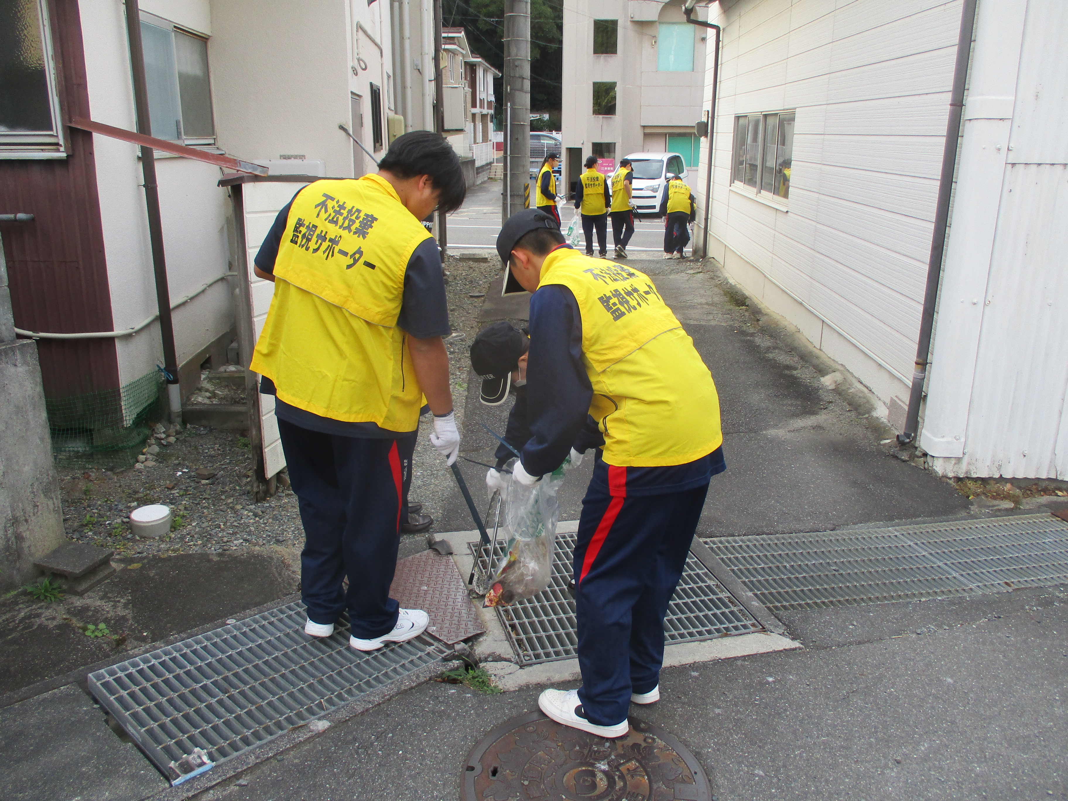 活動は4班体制で、班ごとに先生とともに活動を実施し、不法投棄されにくい環境づくりに寄与されました。