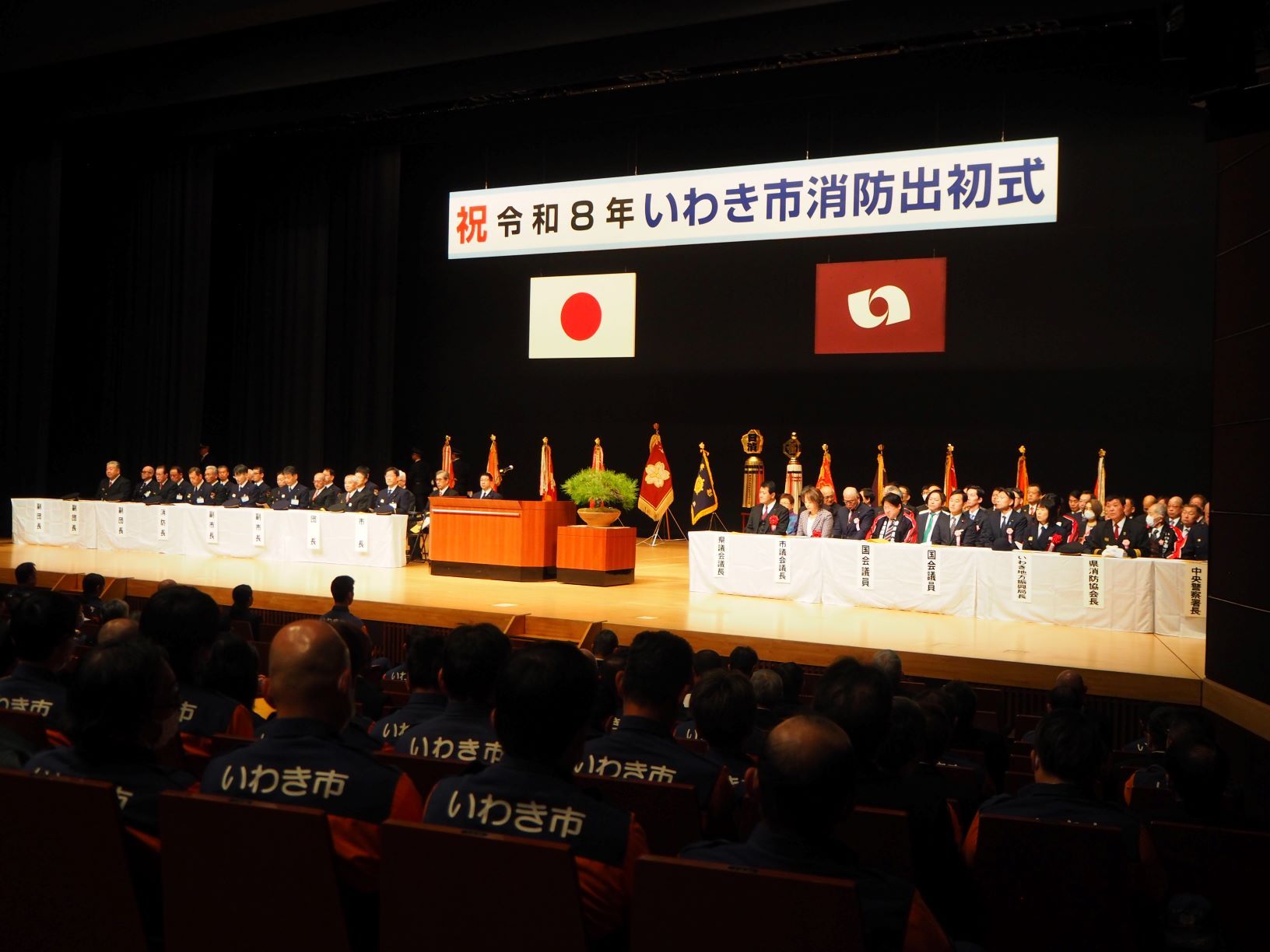 令和8年1月4日(日)、いわきアリオス アルパイン大ホールにて、一年の無火災、無災害を祈念するとともに、市民の消防に対する理解と防災意識を高め、消防団員・職員の士気の高揚を図ることを目的に、令和8年いわき市消防出初式を開催しました。
