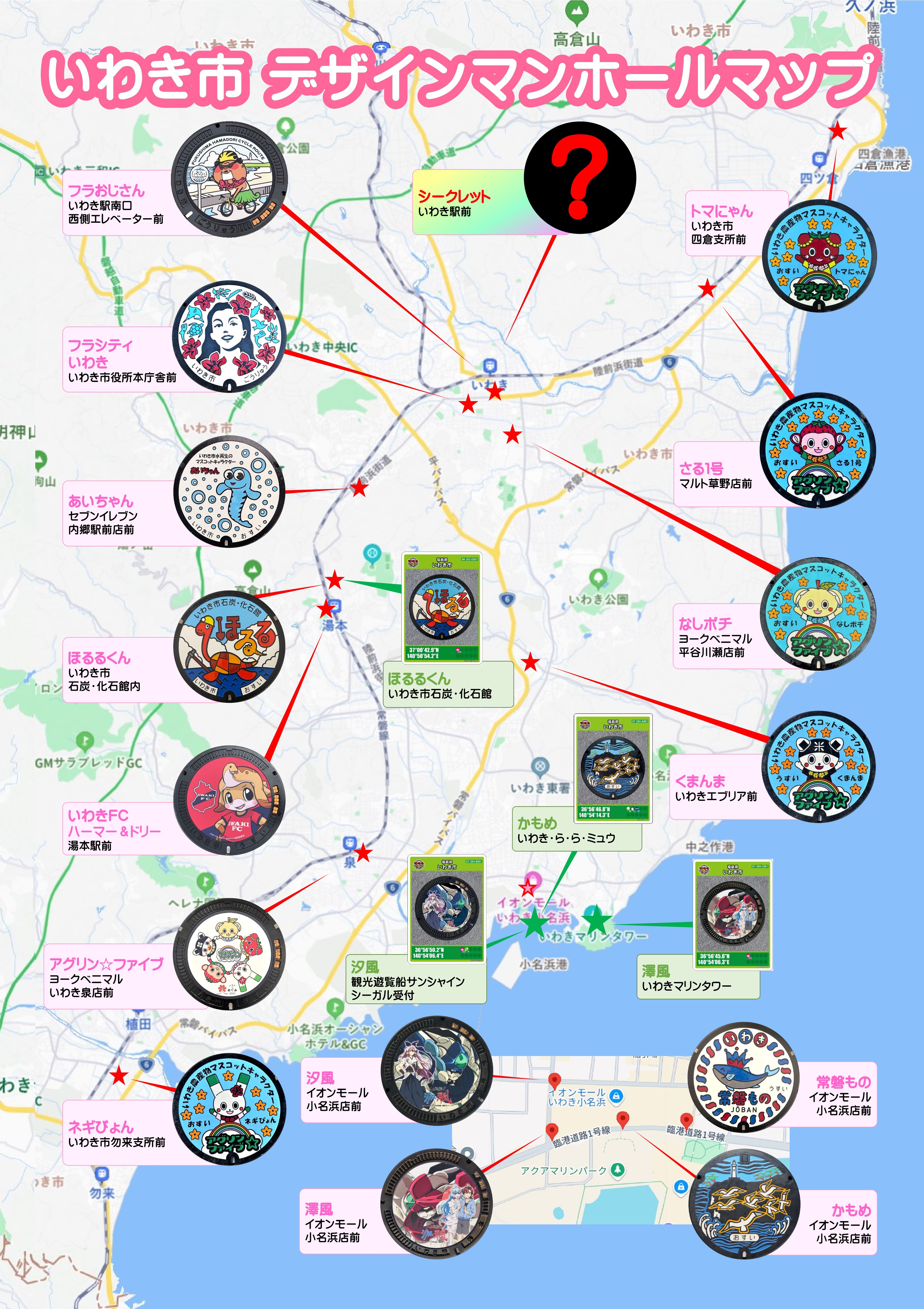 いわき市のデザインマンホール情報を網羅した、デザインマンホールマップです。