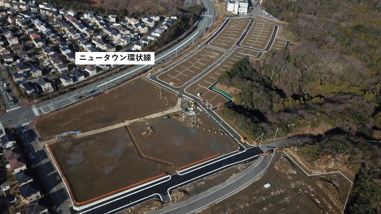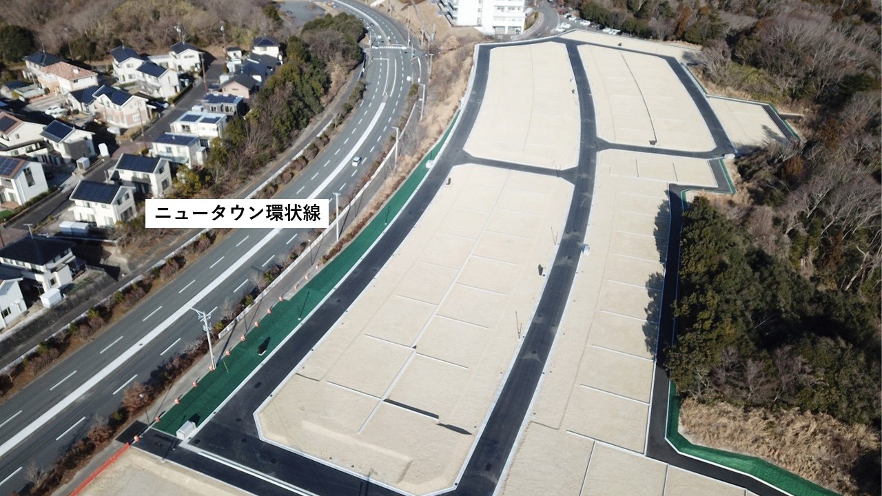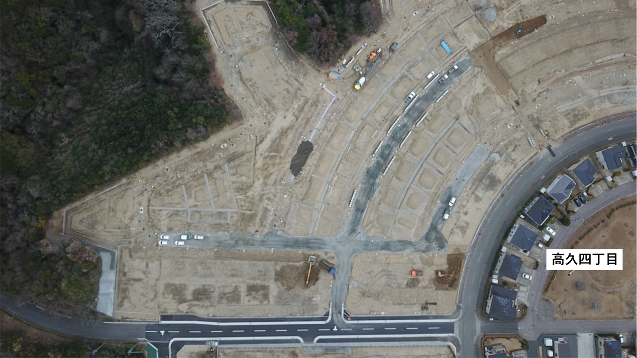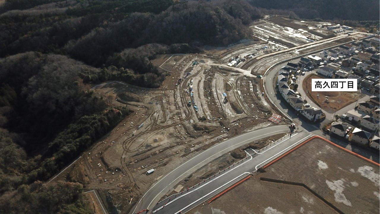 いわきスマートタウンモデル地区推進事業では、市土地開発公社が所有する中央台高久地区の土地を「拠点エリア」と位置付け、官民共創のもとこのエリアの造成・宅地分譲を進めています。(住所:いわき市中央台高久五丁目)