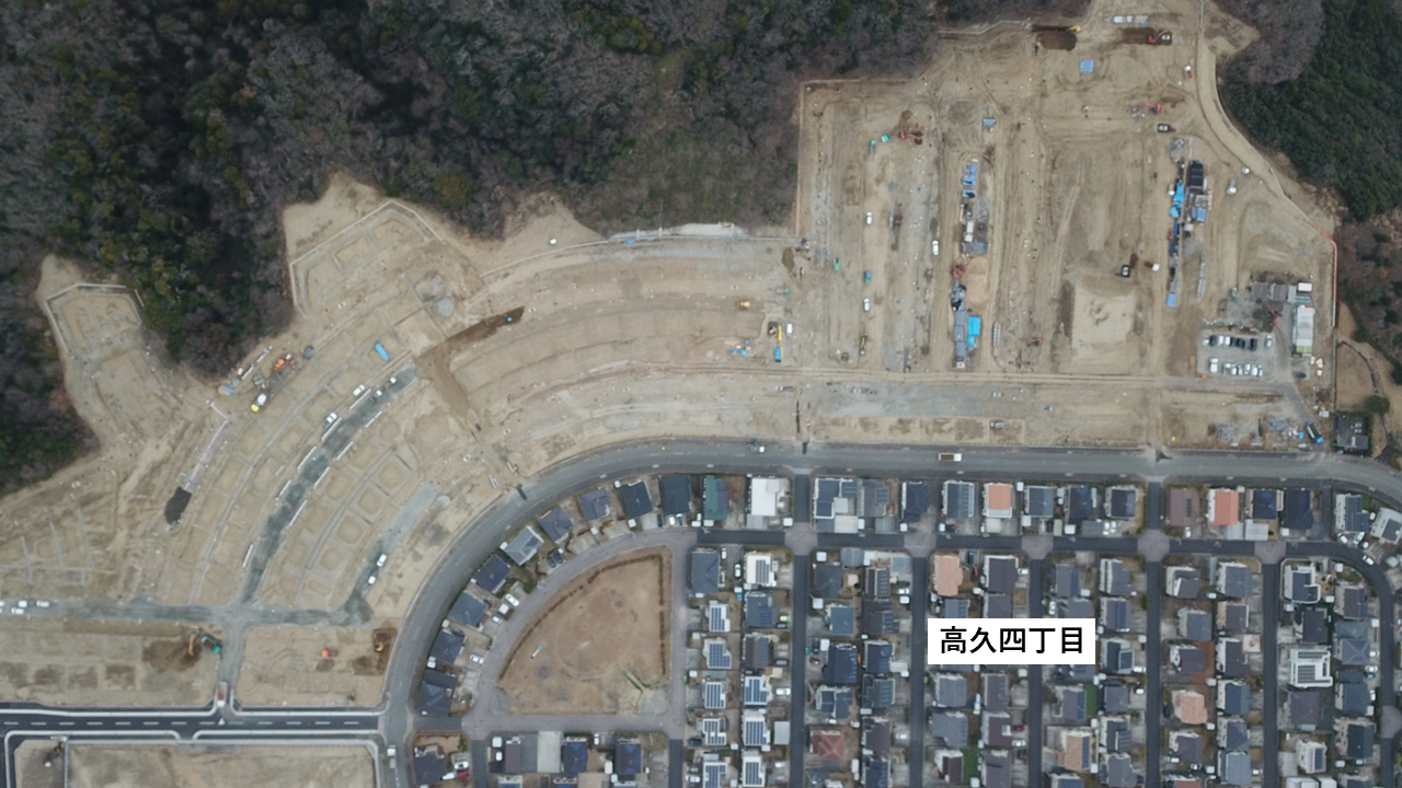 令和8年2月をもって、第1工区の宅地造成工事が完了しました。今後は、第2~4工区の進捗状況をお知らせしていきます。