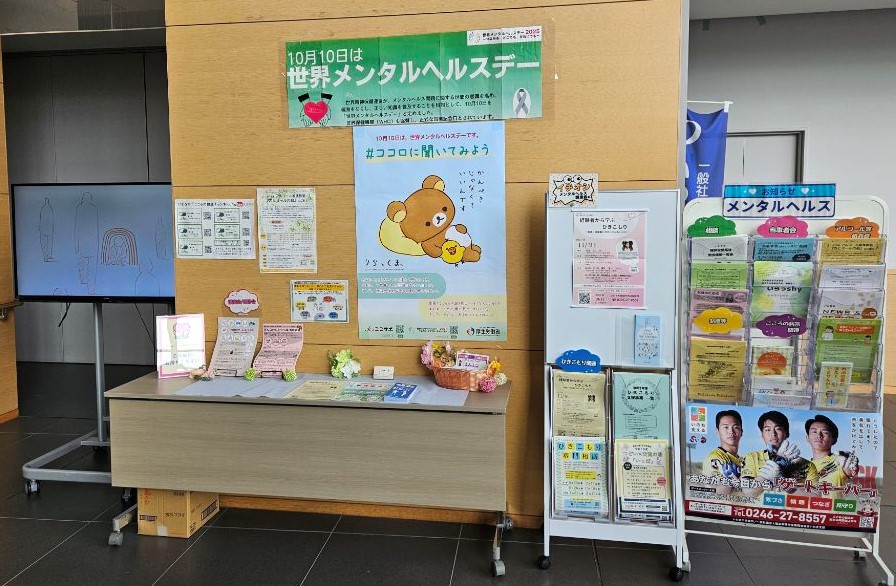本市では、「世界メンタルヘルスデー」に合わせ、10月中、総合保健福祉センター内で啓発コーナーを設置しています。