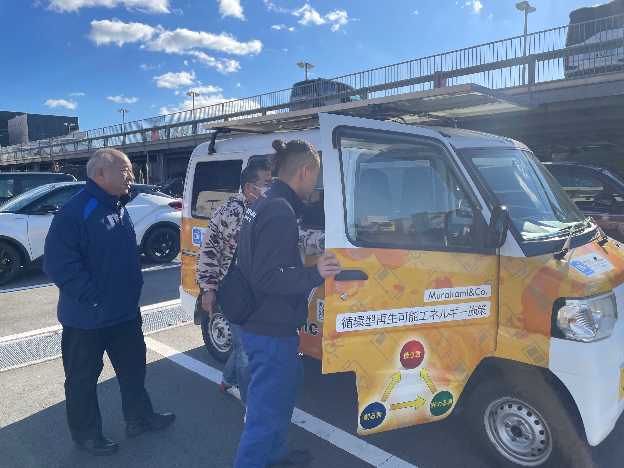 8月3日(日)に添野ICで開催された小名浜道路開通プレイベントにおいて、無給電EV車両の展示を行いました。