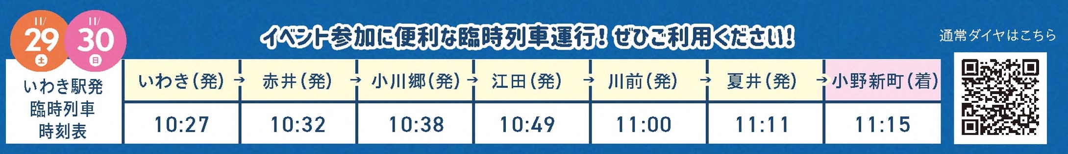 ふくしま鉄道博の開催期間中、いわき駅発、小野新町駅着の臨時列車を運行します!