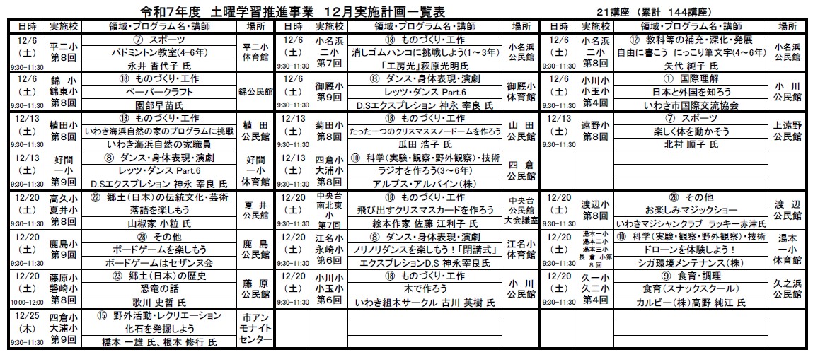 ✨令和7年度✨11月・12月土曜学習スケジュールについて