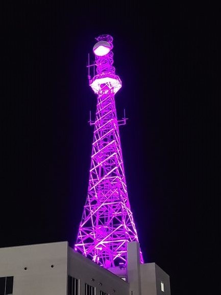 〇 写真は左から、いわきマリンタワー(パープル)、東北電力ネットワーク(株)いわき電力センター無線