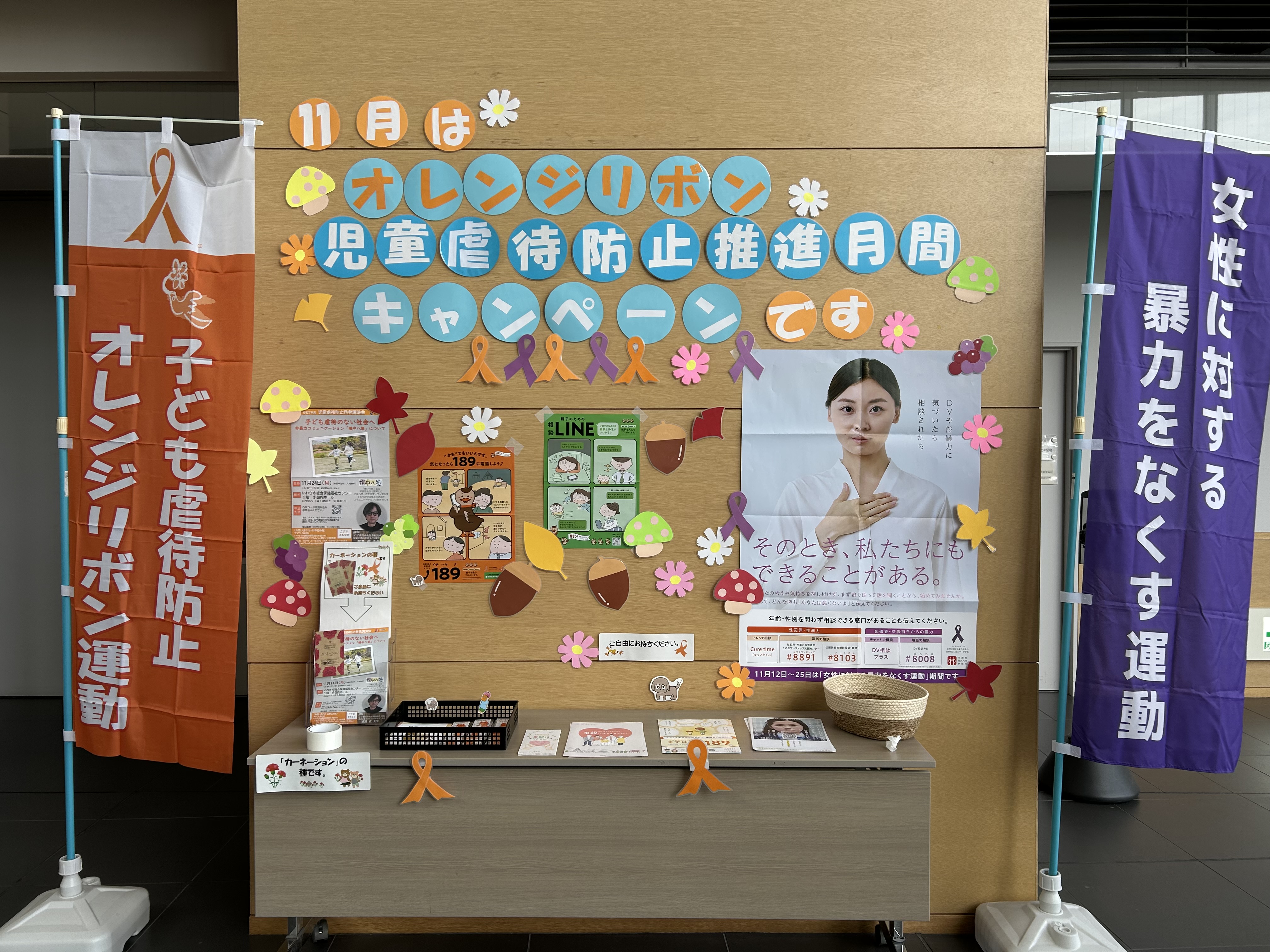 期間中、市総合保健福祉センター1階において 、11月1日から11月28日までの間啓発ブースを設置しました。