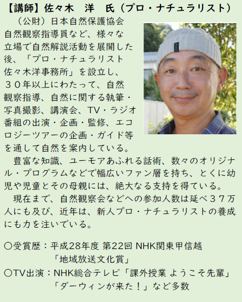 【講師】プロ・ナチュラリスト 佐々木 洋 氏