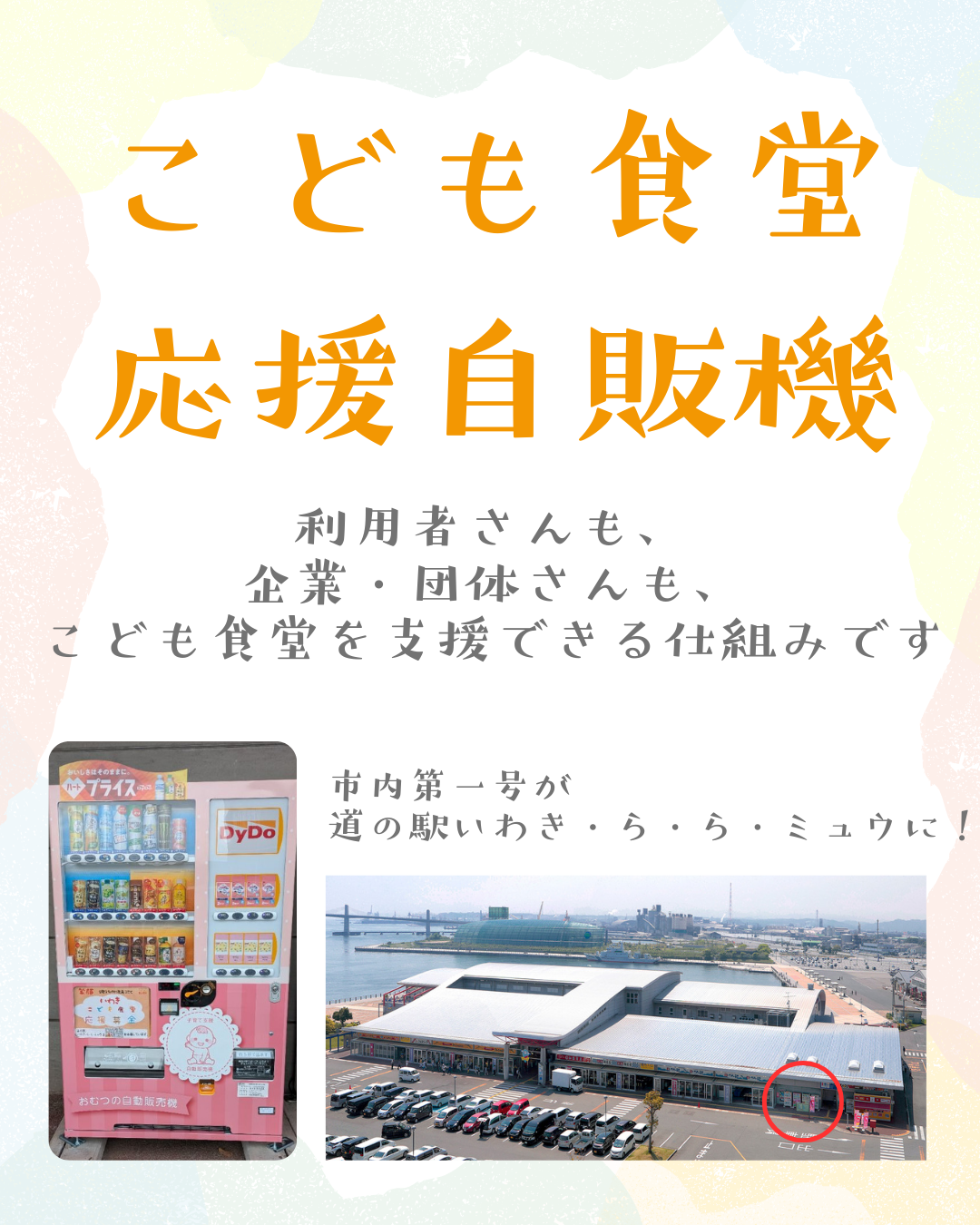「こども食堂応援自販機」の市内第一号が、道の駅いわき・ら・ら・ミュウに設置されました!