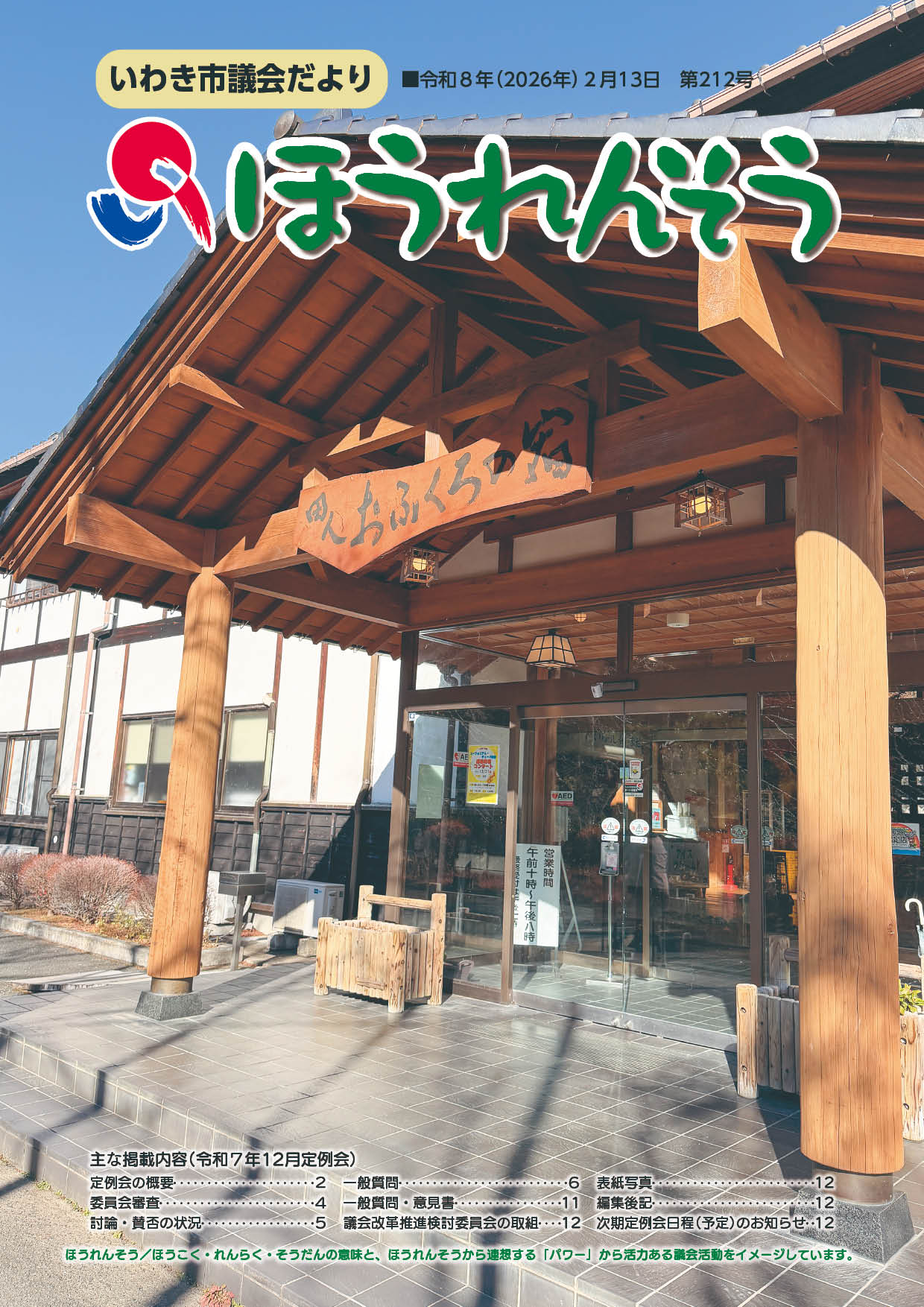 - p. 12 お知らせ(議会改革推進検討委員会の取組、表紙写真、次期定例会日程(予定))