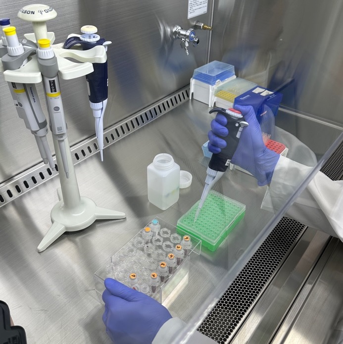 1⃣遺伝子検査用の試薬を混ぜ合わせ、プレートに入れます。試薬の入ったプレートに抽出した遺伝子を入れます。