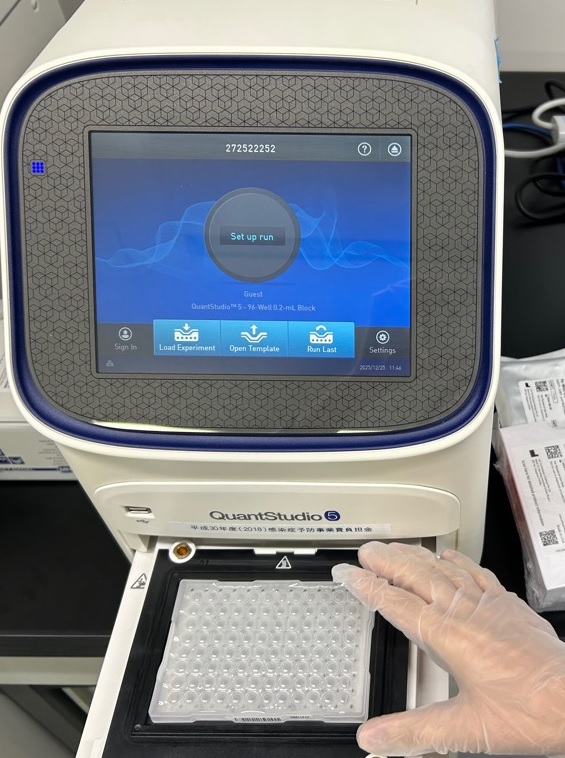 2⃣プレートを装置にセットし、目的の遺伝子があるか調べます。