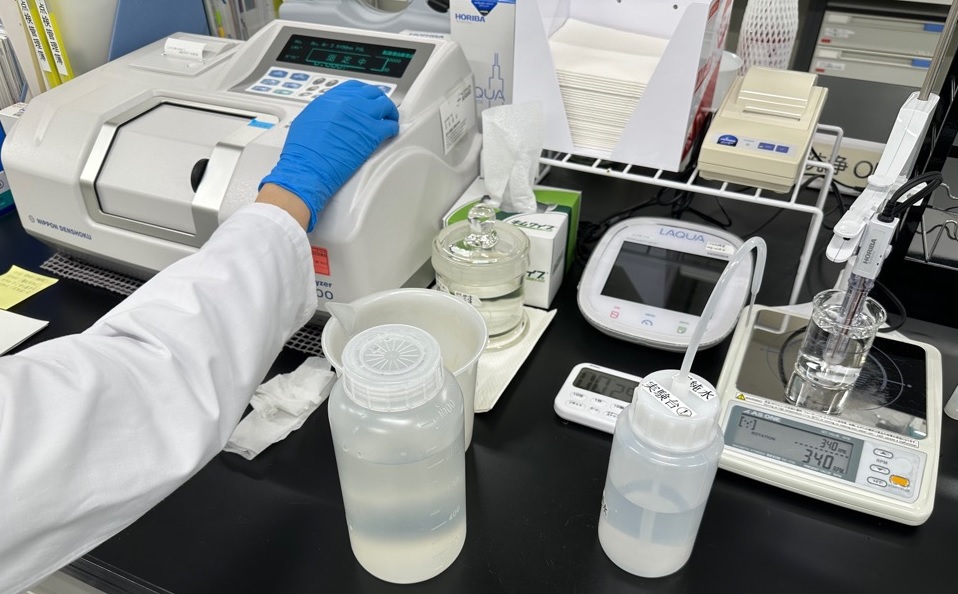 2⃣検水中の塩化物イオンや有機物、微量金属を測定します。