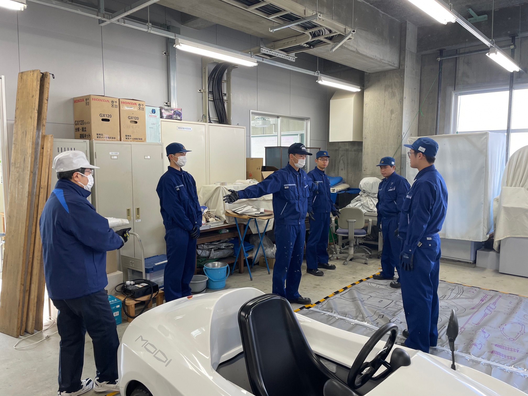 初日に座学形式でEVの仕組み等を学び、2日目に実写EV教材を解体、3日目に実写EV教材を組み立て、実際に乗車し試走しました。