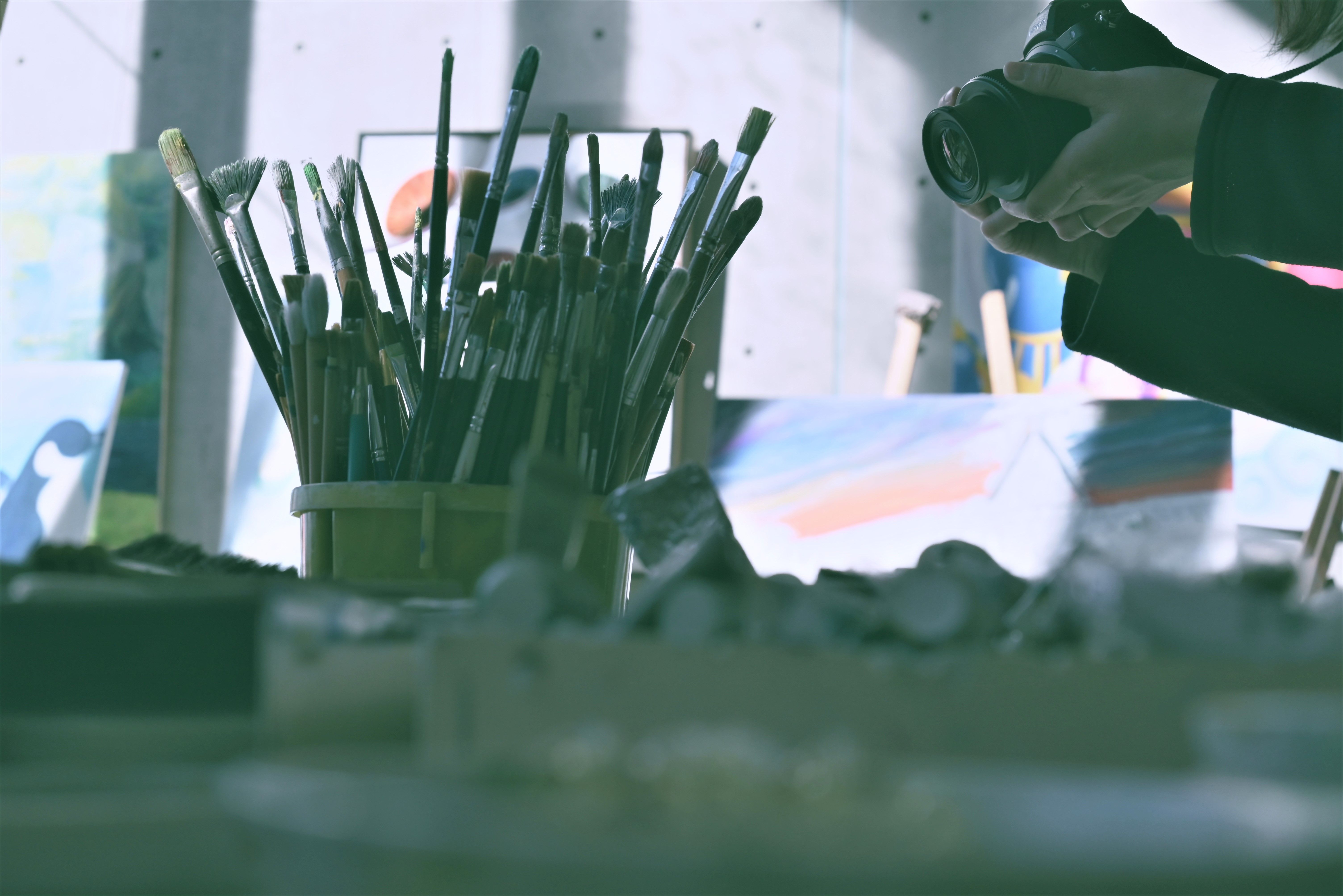 写真の講習会の時に撮らせていただいた写真です。「連想」というタイトルは凄く気に入っています。美術部の道具は、それを使う美術部の誰かが自分なりに何かを想像し描くために使うもの。それを見て構図を想像しカメラを構える他の参加者。それを見て、この場面を撮ったらかっこいい写真が撮れるんじゃないかと考えた僕。想像する物は別々だけど、それぞれいい作品を作りたいと考えてると思うとグッときたのでタイトルにしました。