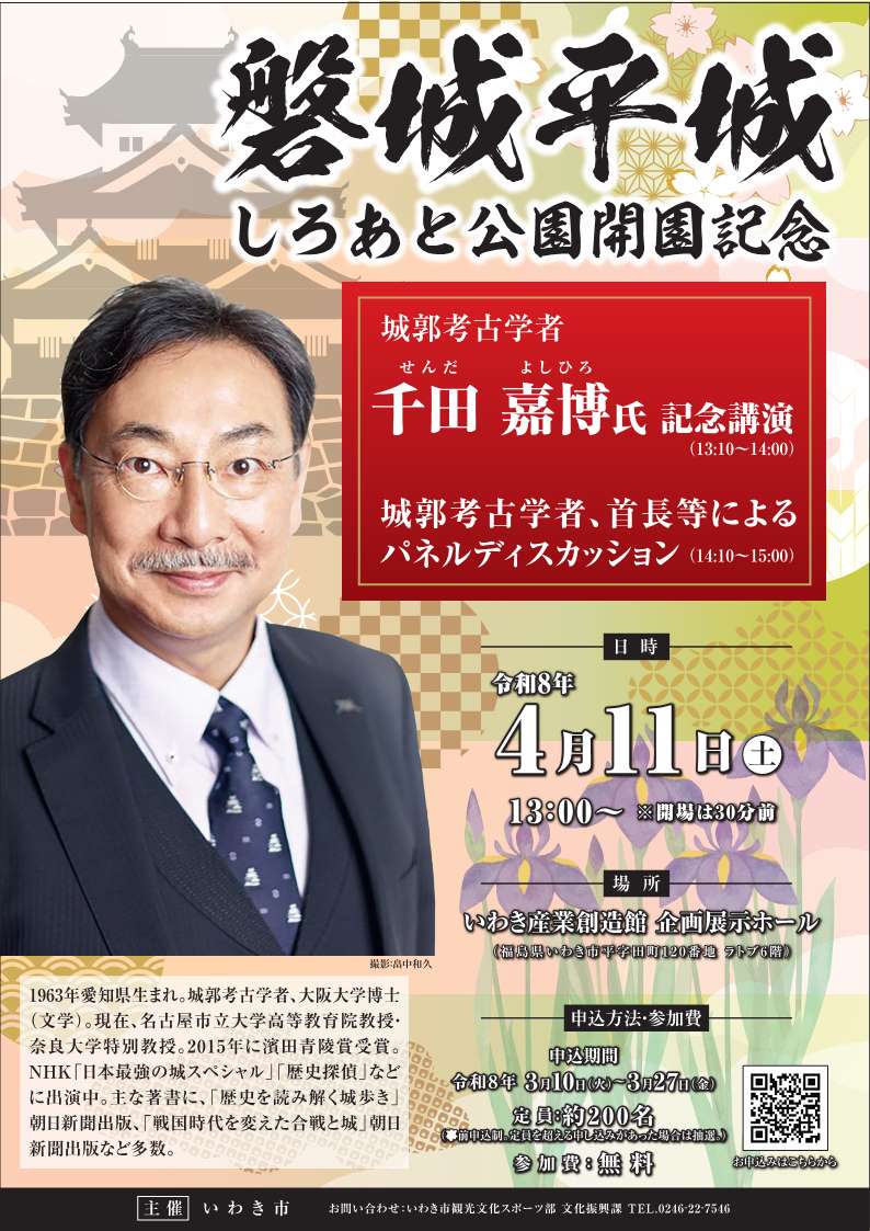 本公園の供用開始に伴い、本市の貴重な歴史的資源である磐城平城本丸跡地の魅力を広く市内外に発信するため、記念イベント(記念講演及びパネル